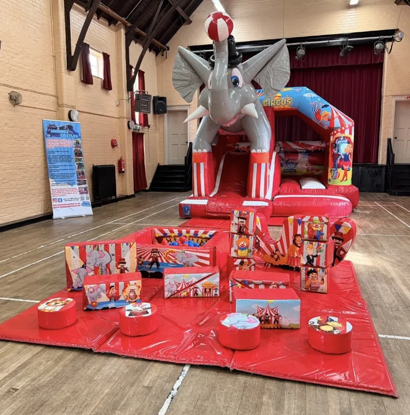 This amazing circus package includes the 3D Circus castle and Circus soft play set including ball pit.
