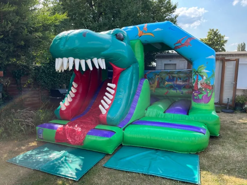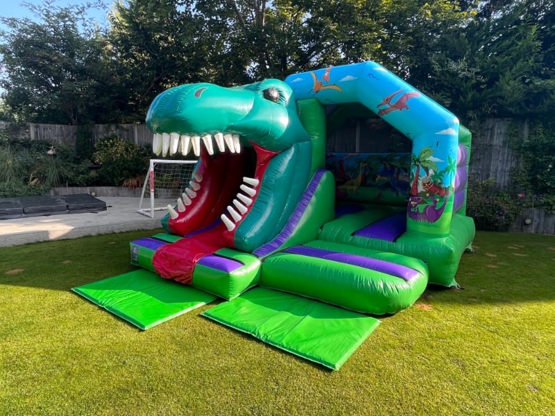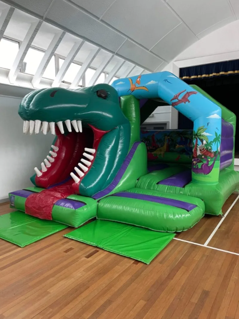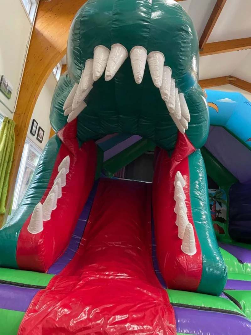 This bouncy castle is a must for any Dino fan, you slide through the Dinosaurs mouth !