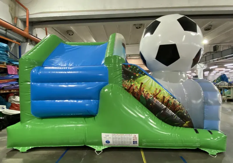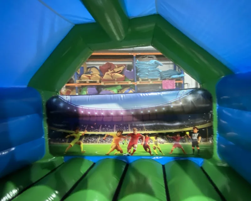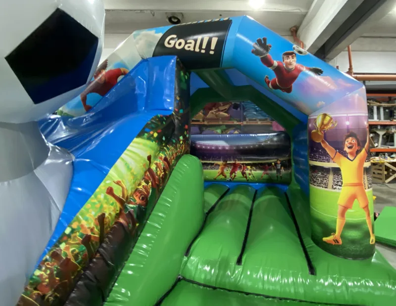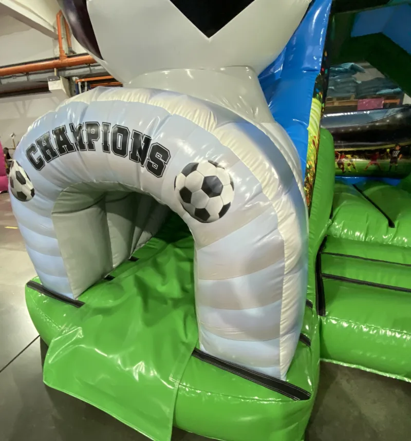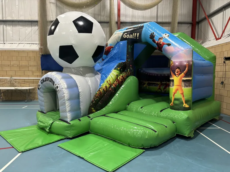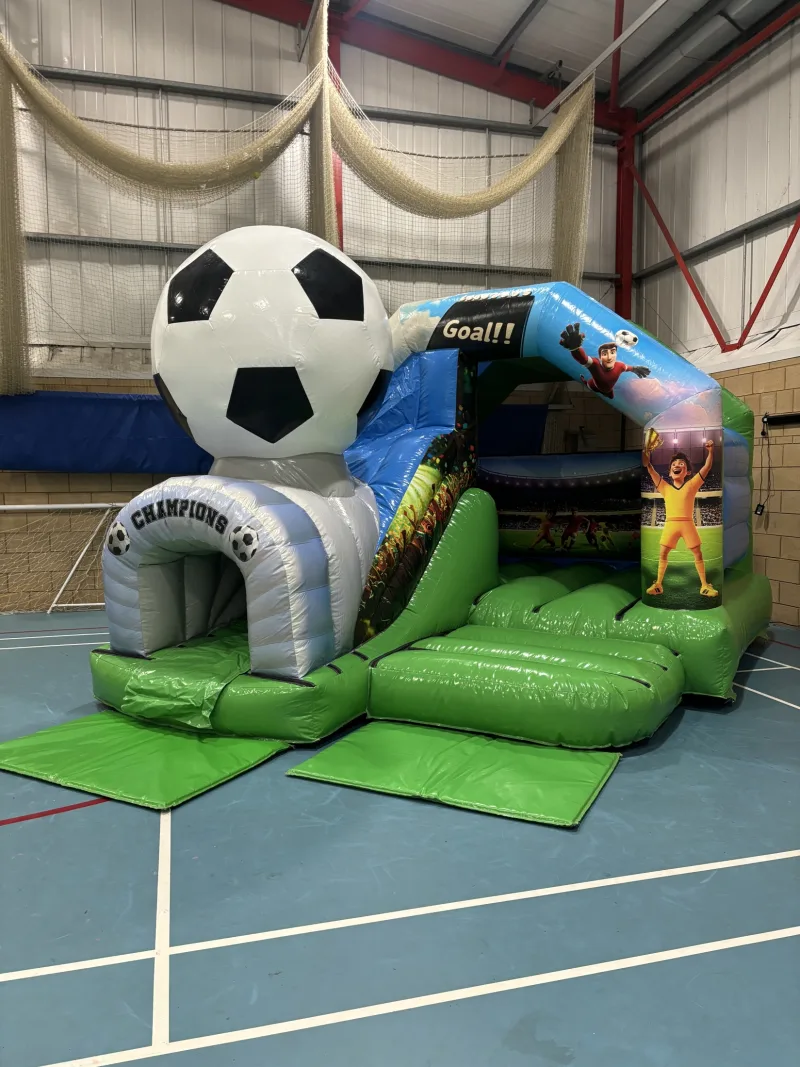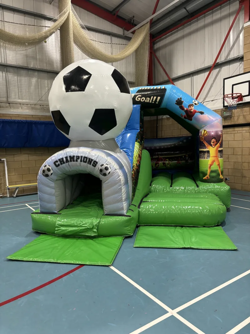 This bouncy castle is a must for any Football fans! There is a bouncing area for lots of fun and then climb the small steps to slide through the giant football and out the champions tunnel!