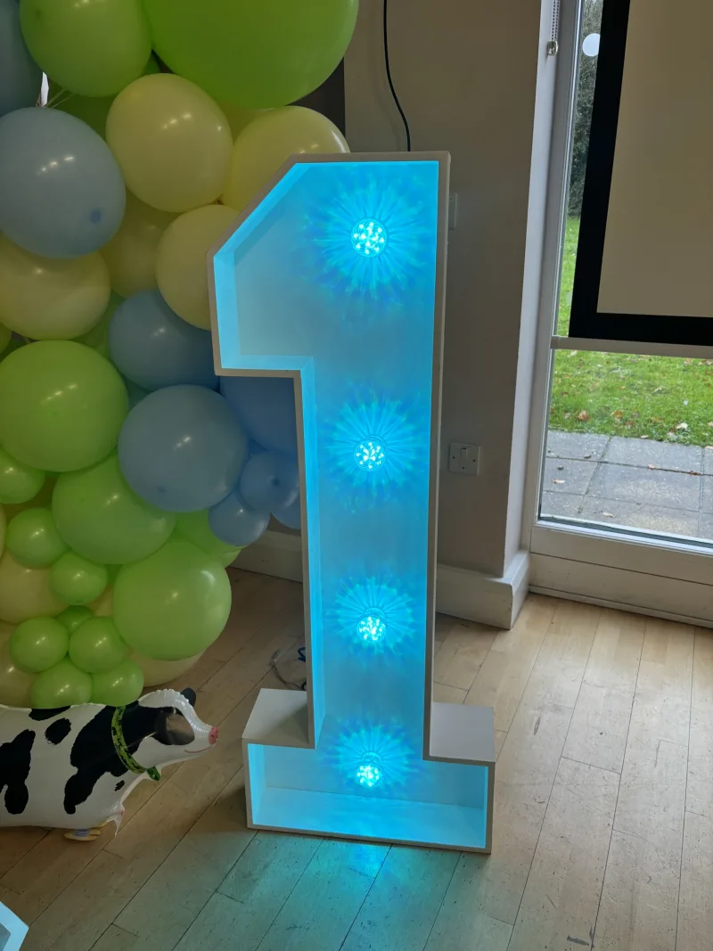 Our light up numbers are extra special as they can be set to a number of different colours to match your party theme. Just let the delivery driver know on the day what colour you want and we will set it with the remote control for you.