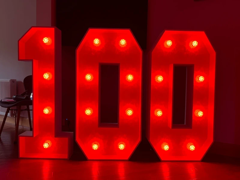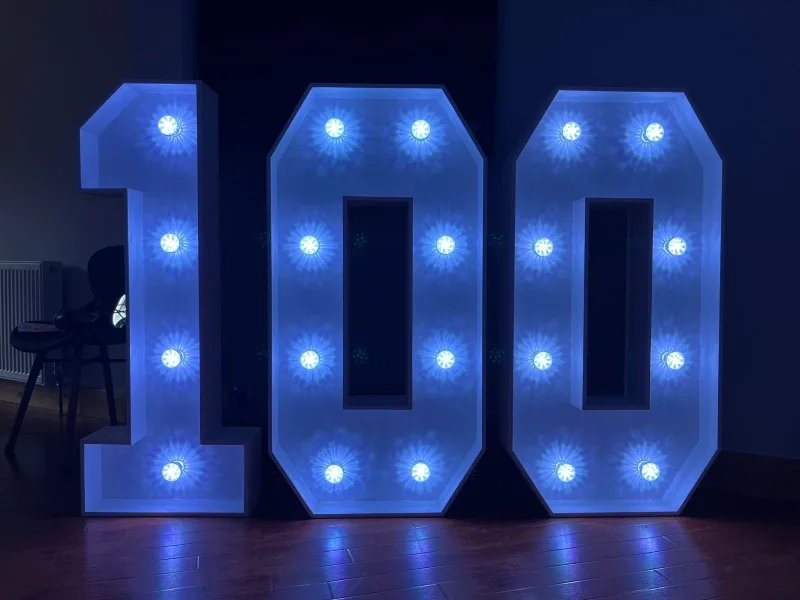 Celebrate your special occasion in style with our stunning 4ft light-up number 100! Standing tall and glowing bright, this elegant feature instantly transforms any venue into a picture-perfect setting.