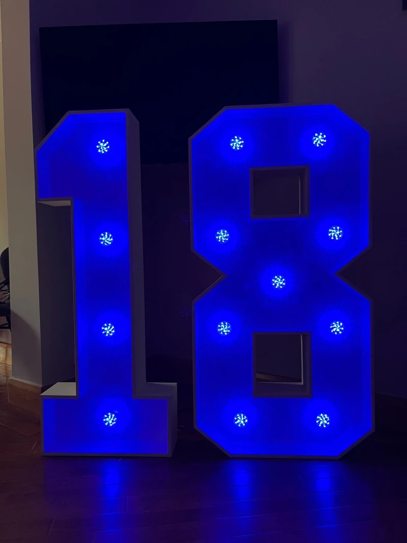 Celebrate your special occasion in style with our stunning 4ft light-up number 18! Standing tall and glowing bright, this elegant feature instantly transforms any venue into a picture-perfect setting.