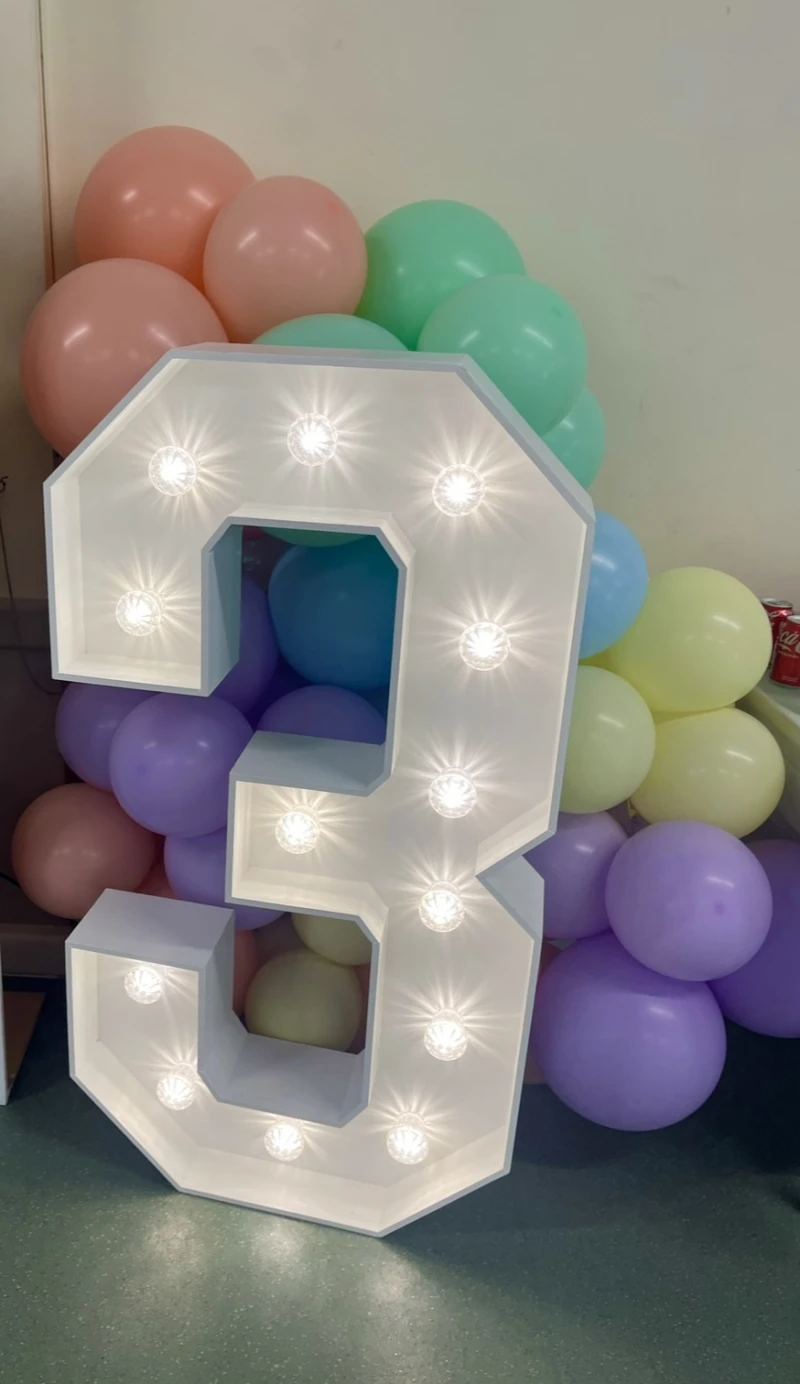 Celebrate your special occasion in style with our stunning 4ft light-up number 3! Standing tall and glowing bright, this elegant feature instantly transforms any venue into a picture-perfect setting.