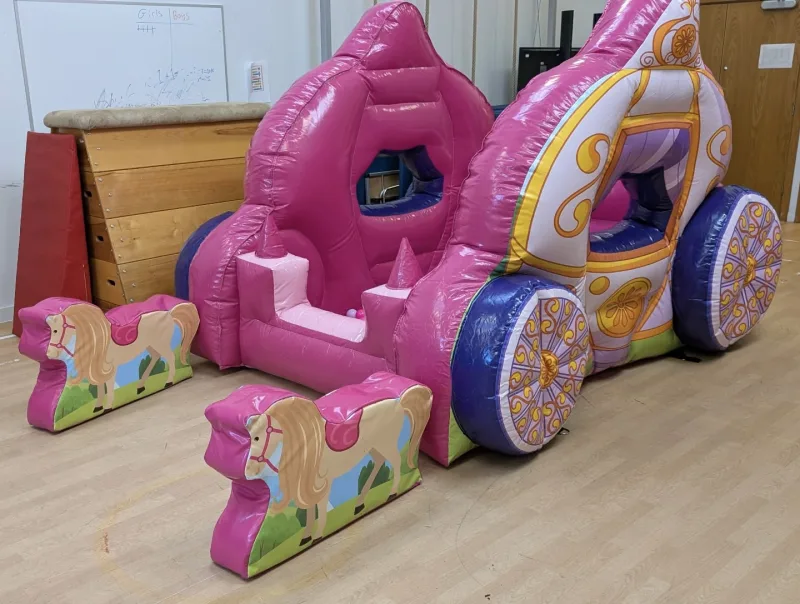 Make your child's party truly magical with our Princess Inflatable Carriage Ball Pit - the perfect addition for little royals who love fun and adventure! Featuring a beautiful carriage design, sparkling colours, and a safe enclosed ball pit, this inflatable brings fairy tale excitement to any event. Ideal for birthdays, family gatherings, school fairs, and princess-themed parties, it's guaranteed to make memories that sparkle! Featuring air jugglers so the children can be mesmerised by the magical floating balls!