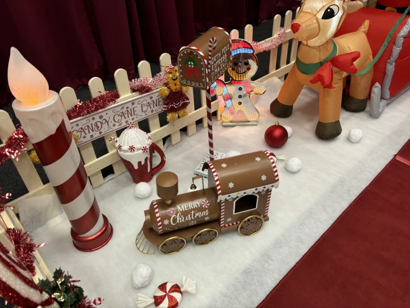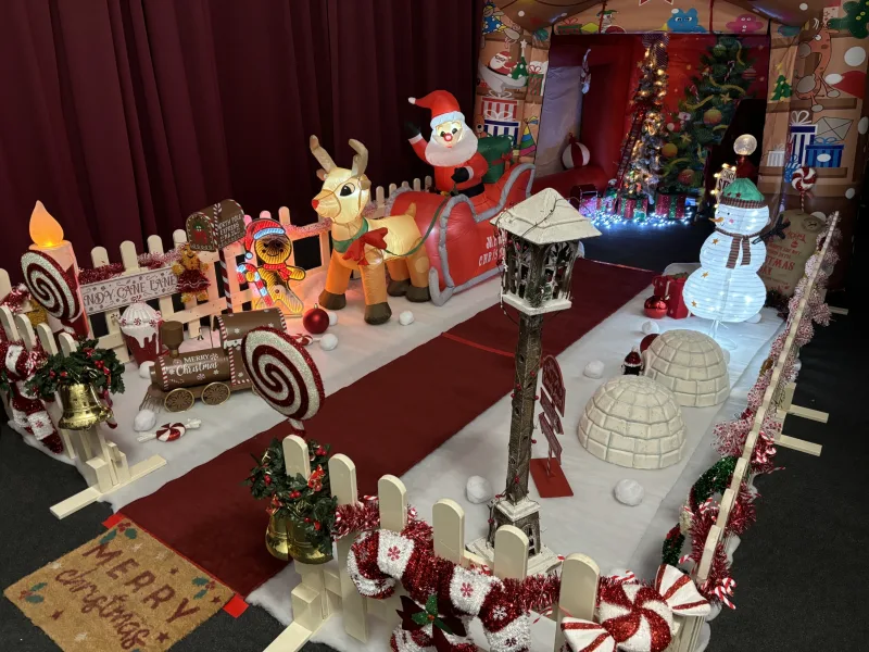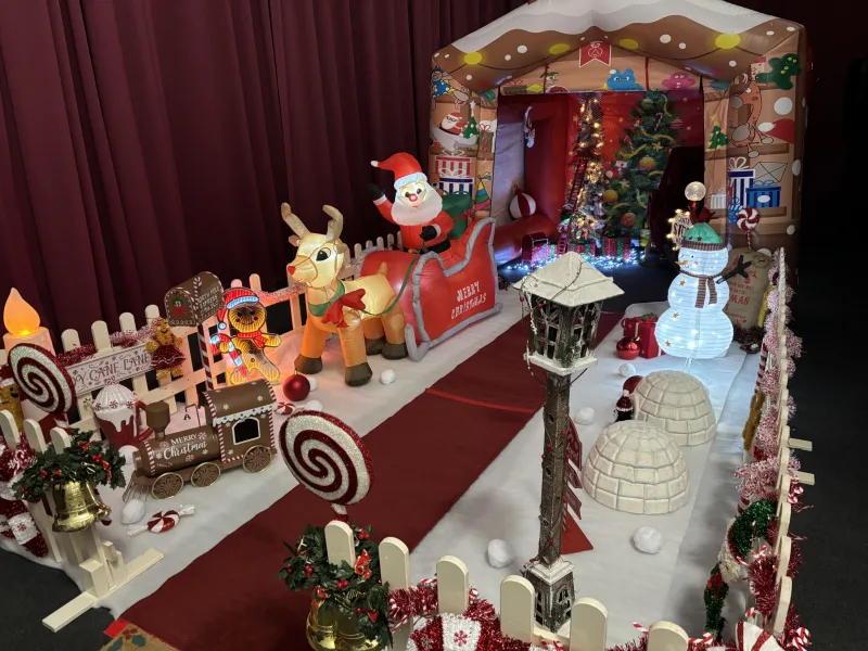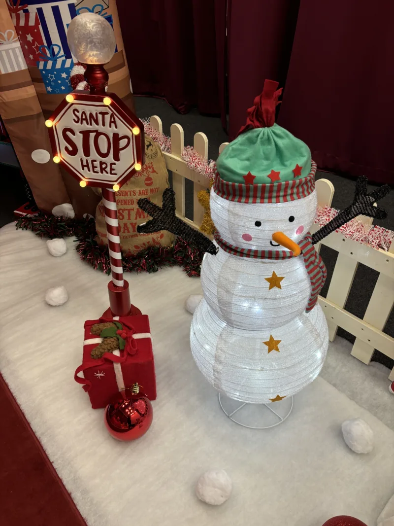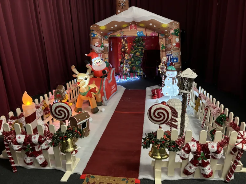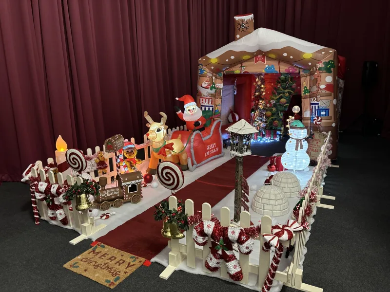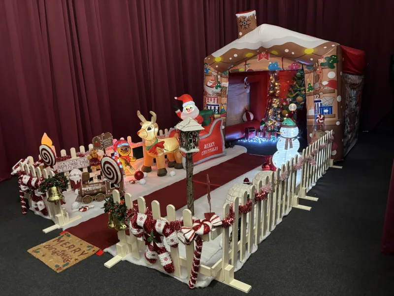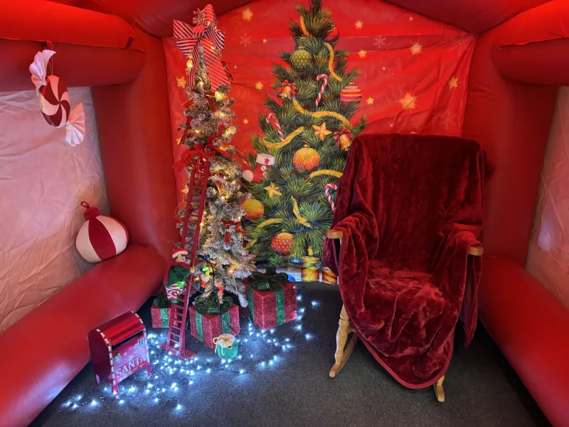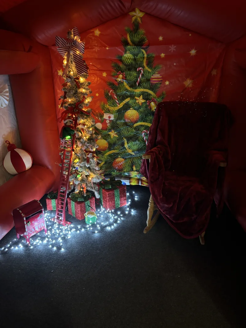 We will decorate the grotto in and out with a Christmas tree, artificial presents, fake snow, white fencing, Christmas lights a chair for Santa and other Christmas decor. It really is amazing and customers come back year after year to book this once they see it.