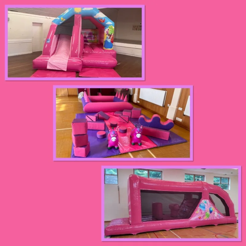 This package includes the pink assault course, pink combi castle and pink soft play.